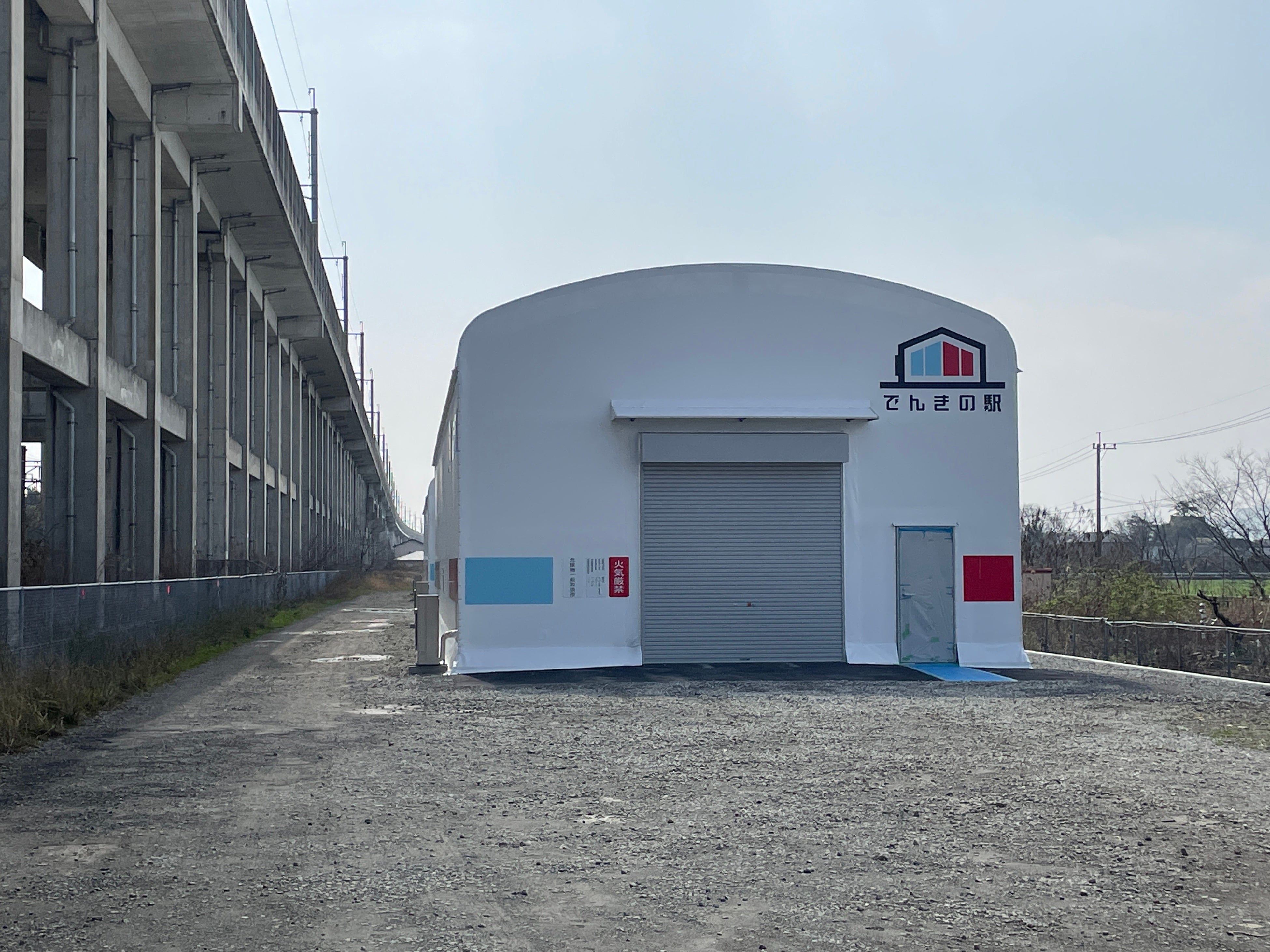 2050年カーボンニュートラルの実現に向けて、再生可能エネルギーの大量導入を見据えた電力ネットワークの安定化・次世代化が求められるなかで、電力系統の需給バランスを調整する蓄電池の役割が重要になっています。こうした役割を担う“でんきの駅川尻”は、2024年3月に熊本県熊本市に誕生した、電気自動車の使用済みバッテリーを活用した蓄電所です。蓄電所建屋には高い安全性が要求されました。