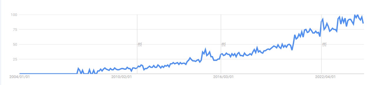 厚生労働省による患者調査による歯科矯正初診患者数は、2019年から2022年の3年間で3.6倍に増加(※1)しています。さらに歯科矯正の中でも、「マウスピース矯正」という単語のGoogle検索数は2004年頃と比較して8-9倍程に伸びています。