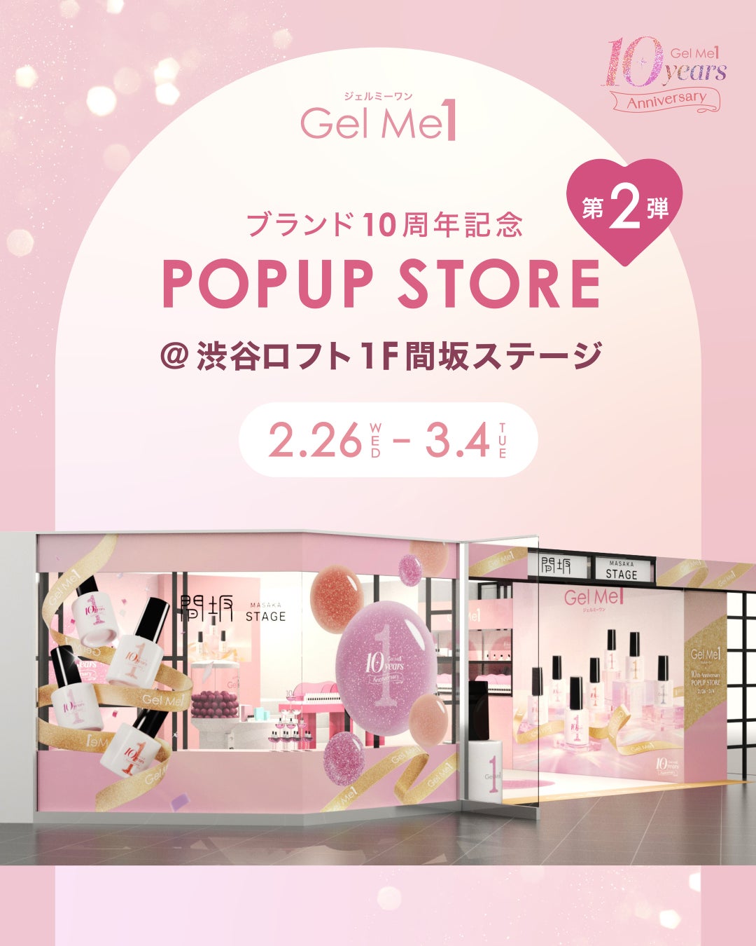 株式会社コスメ・デ・ボーテ(所在地:東京都渋谷区)が展開するサロン級セルフジェルネイル『ジェルミーワン』がブランド誕生10周年を迎え、ブランド史上最大規模のPOP UPイベントを渋谷ロフト1F 間坂ステージで開催いたします。