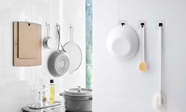 キッチンやバスの光沢面に貼り付けられるシンプルなフックです。