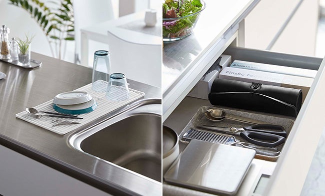 やわらかいシリコーン製なので、キッチンを傷つけずに食器を乾燥できます。