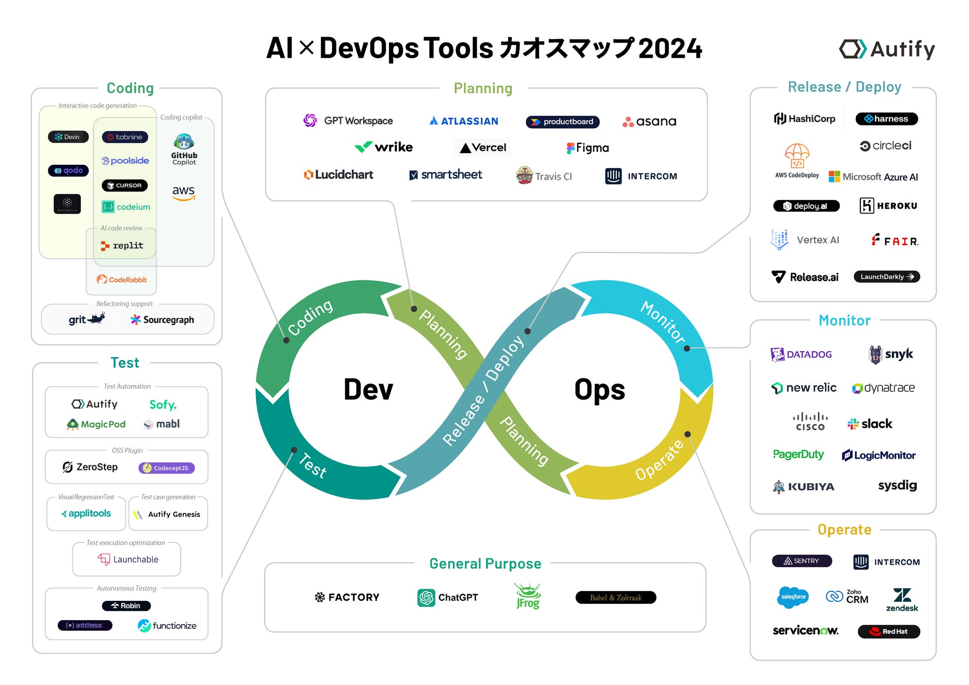 AIと人の総合力でソフトウェア開発・テストプロセスを包括的に支援するプラットフォーム「Autify」を開発・提供するオーティファイ株式会社(本社:東京都中央区、代表取締役CEO:近澤良)は、AIを活用したソフトウェア開発ツールのカオスマップを公開しました。