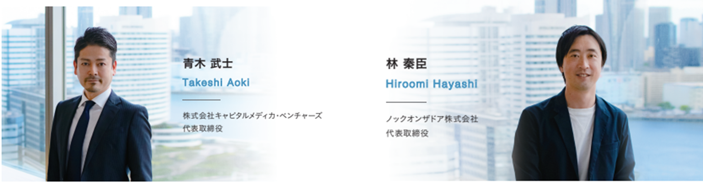 対談「インパクト投資におけるイグジット―レスポンシブルイグジットはどう機能するか―」 株式会社キャピタルメディカ・ベンチャーズ(CMV)は2022年10月、ヘルスケア・ニューフロンティア・ファンド(HNF)の投資先企業 1 社のレスポンシブルイグジットを達成しました。HNFでは利益の追求とともに投資先企業の社会的インパクトを重視。今回、投資先企業のひとつであるノックオンザドア株式会社(KOD)とともにイグジットインパクト・デューデリジェンスを行った結果、同社の中長期アウトカムやパーパス(企業の存在理由)の早期達成にはシミックホールディングス株式会社(シミックグループ)への株式譲渡が有効であると判断し、同社に保有株式を全て譲渡しました。この対談では、KODの林泰臣・代表取締役(以下、林)とCMVの青木武士・代表取締役(以下、青木)が、今回のレスポンシブルイグジットの経緯やKODのイグジット後の変化など語ります。 |