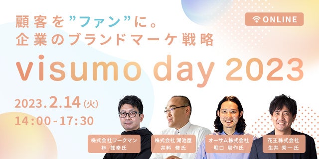 ビジュアルマーケティングプラットフォーム「visumo(ビジュモ)」を提供する株式会社visumo(東京都渋谷区 代表取締役社長 林 雅也)が、2023年2月14日(火)にブランドマーケティング戦略を学ぶイベント「visumo day 2023(ビジュモ デイ)」をオンラインにて開催することをお知らせいたします。