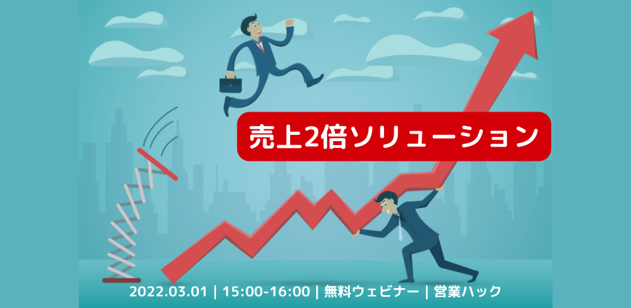 株式会社営業ハックは自社のマネジメントメソッド「売上2倍ソリューション」を解説するセミナーを、3/1(火)15:00〜16:00に開催いたします。2月の開催時には通算50名を超える経営者・管理職・一般社員の方にご参加いただきました。100社以上の営業コンサルティングや営業支援を行ってきた営業ハックが新たに提唱する「売上2倍ソリューション」その仕組みやそれを実現させるための営業マネジメントの具体的なコツ・考え方などをご紹介します。