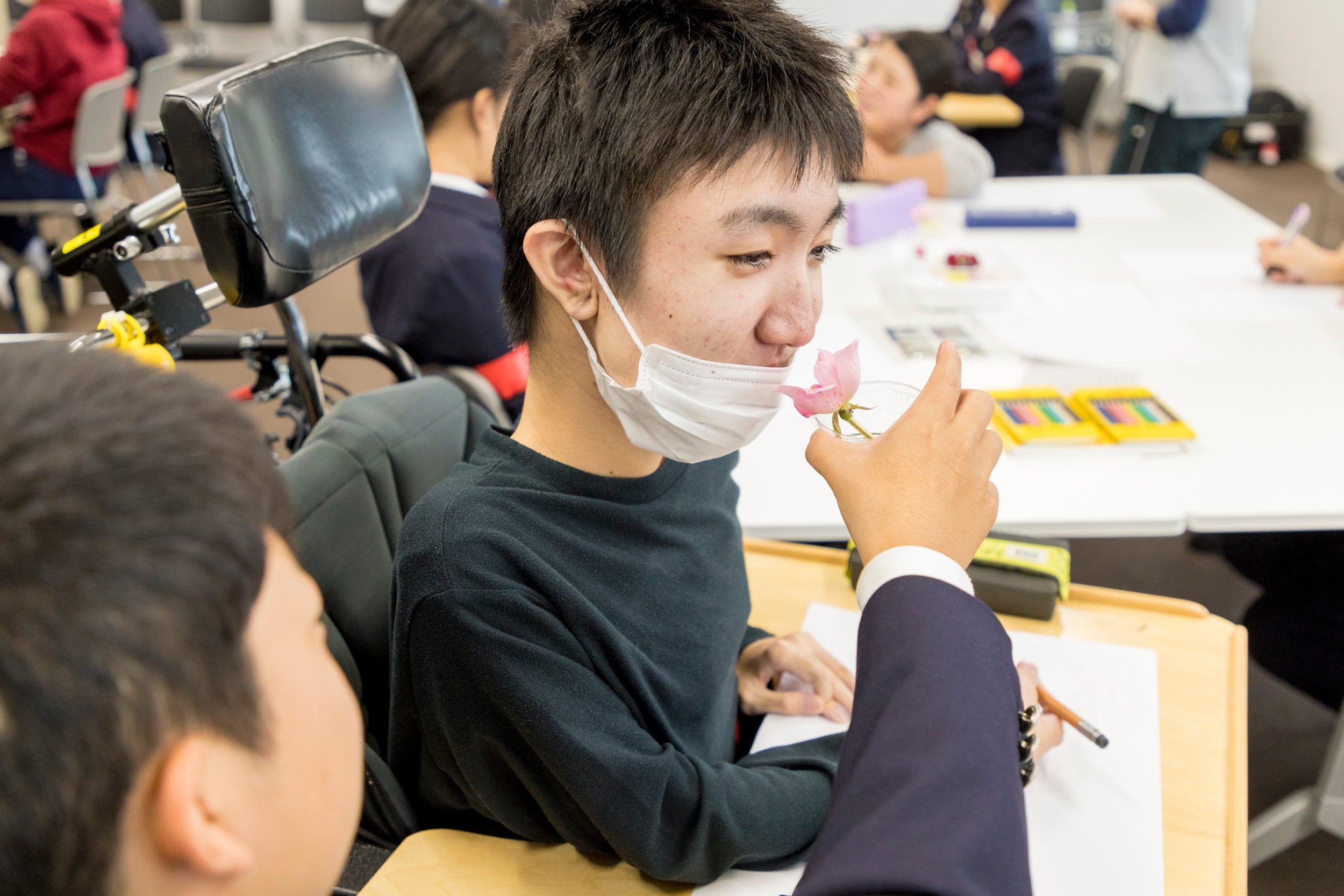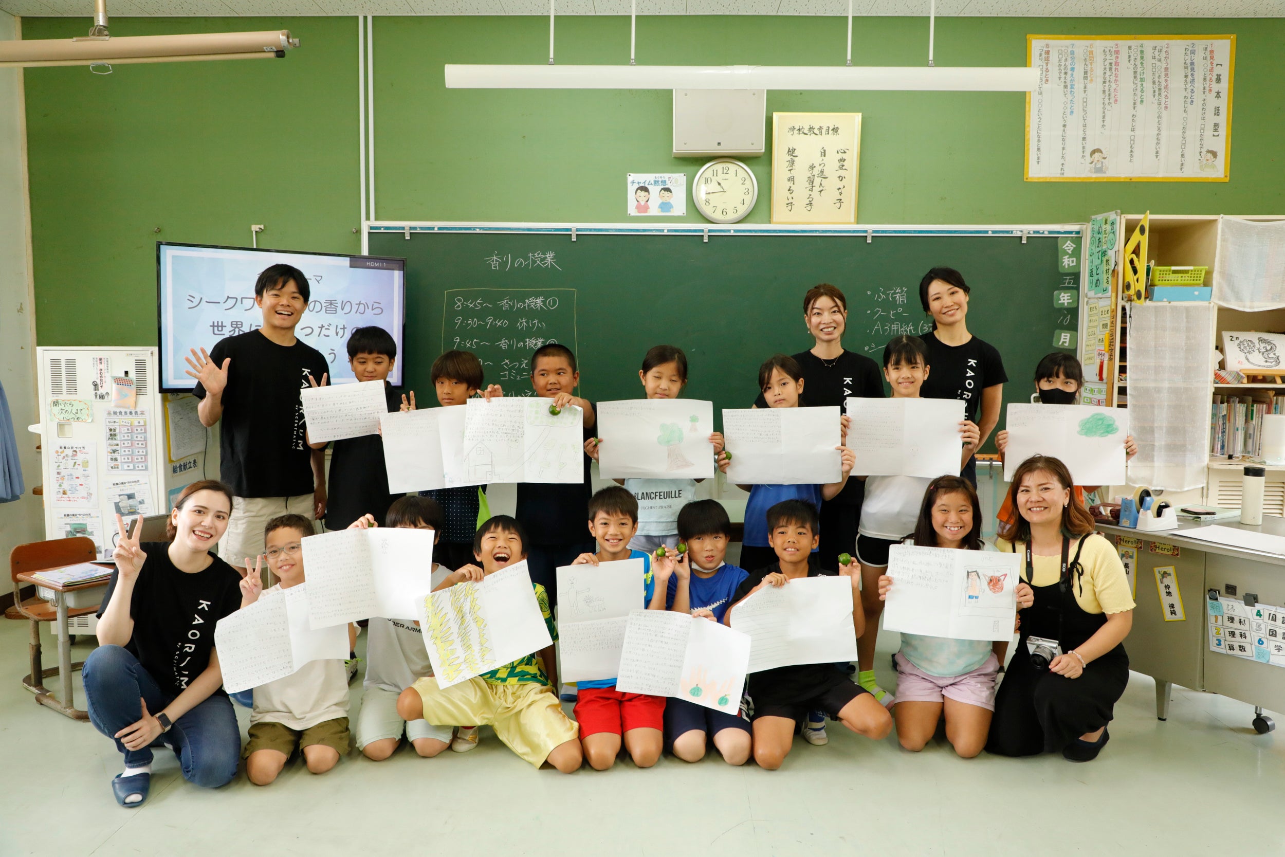 授業では、子供たちが感じた香りを言葉として表現することにより言語能力を養い、香りから物語を創ることで想像力・感性を豊かに広げます。また地元の子供たちが、自分の生まれた地域のものに触れ、深く観察することで、地域の魅力を再確認してもらう機会にもなります。今回、秋田県立比内支援学校では中学部の生徒を対象にバラの香りをテーマに授業を開催しました。名護市立安和小学校では4年生を対象にシークワーサーの香りをテーマに2年連続の開催となりました。