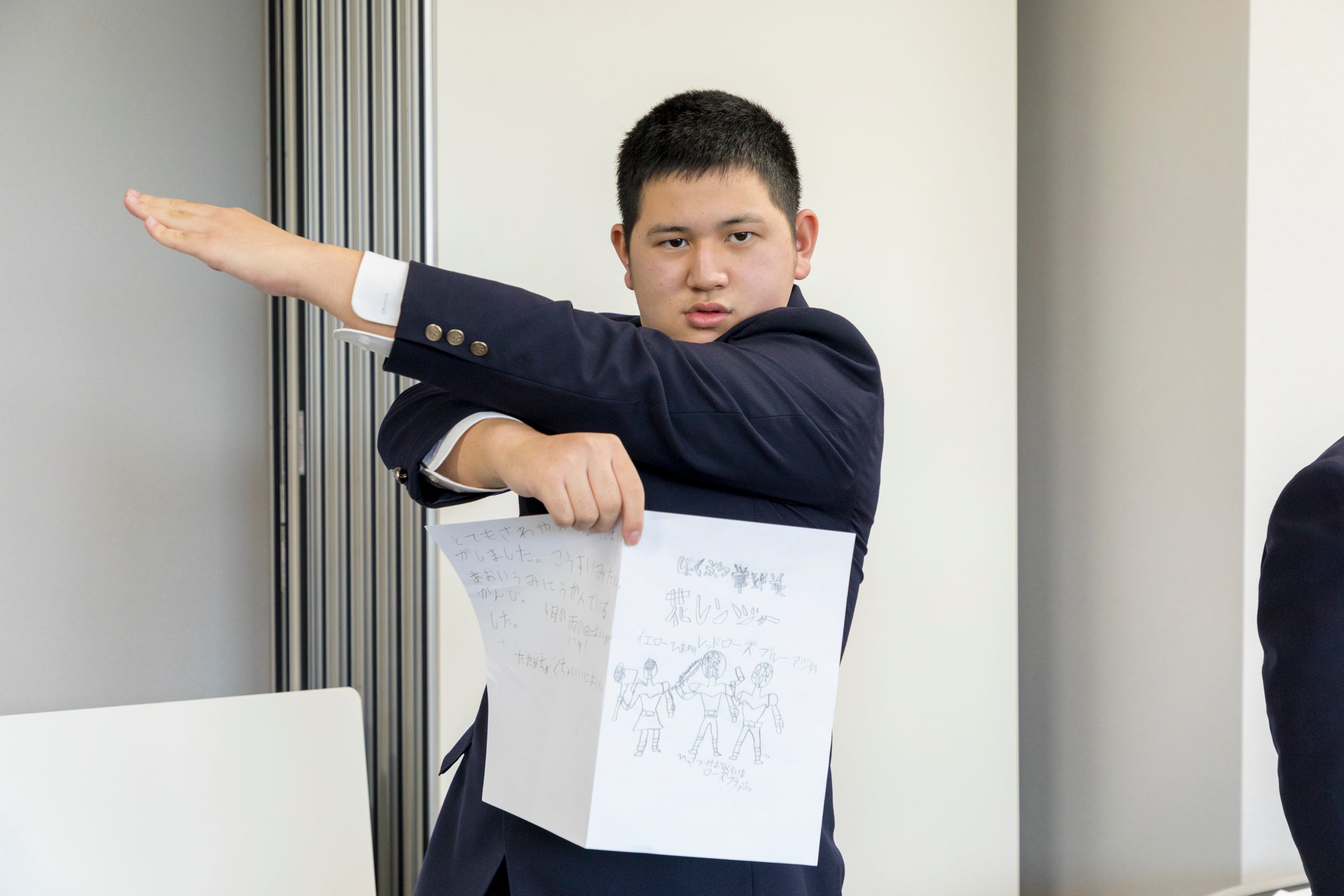 学校に咲くバラの香りを嗅いだのは初めてでした。僕がイメージしたのは、「いい香りは世界を救う!植物戦隊 花レンジャー」という、5人組のヒーローの物語です。メンバーはそれぞれ、「レッド・ローズ」「グリーン竹」「ブルーあじさい」「イエローひまわり」「パープルあさがお」です。彼らは昆虫を倒すために闘っています。僕がつくったストーリーを、みんなが面白がって聞いてくれて、すごく嬉しかったです!