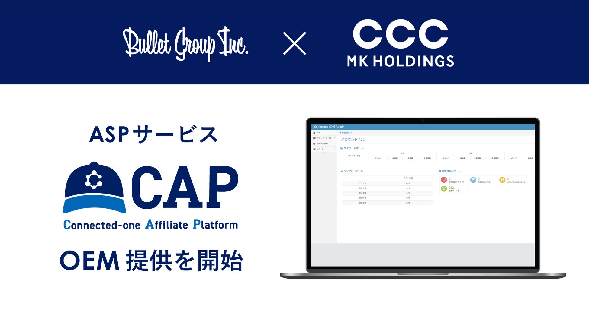 バレットグループ株式会社(本社:東京都渋谷区、代表取締役:小方 厚、以下バレットグループ)は、CCCMKホールディングス株式会社(本社:東京都渋谷区、代表取締役社長兼CEO:髙橋 誉則 、以下CCCMKHD)に対し、デジタルマーケティング効果計測基盤となるASPサービス「CAP(Connected-One affiliate platform)」のOEM提供を開始しました。
