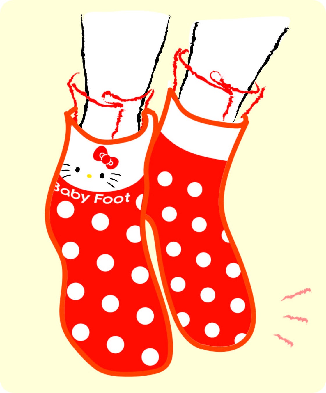 ベビーフット中にも使用後にも使えるハローキティデザインの可愛い靴下が付いてくる!
