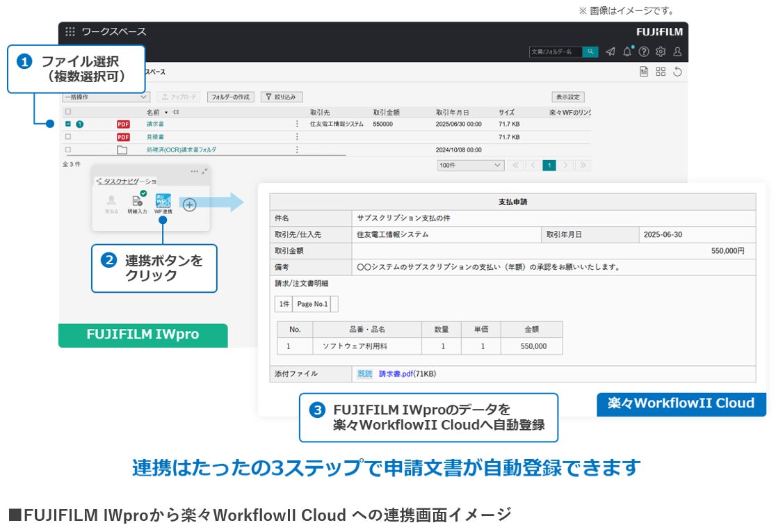 住友電工情報システム株式会社が提供するクラウド型ワークフローサービス「楽々WorkflowII Cloud(らくらくワークフローツークラウド)」と、富士フイルムビジネスイノベーション株式会社が提供する業務DX・デジタル化を支援するクラウドサービス「FUJIFILM IWpro」を連携させた新サービスを2025年7月より提供開始します。