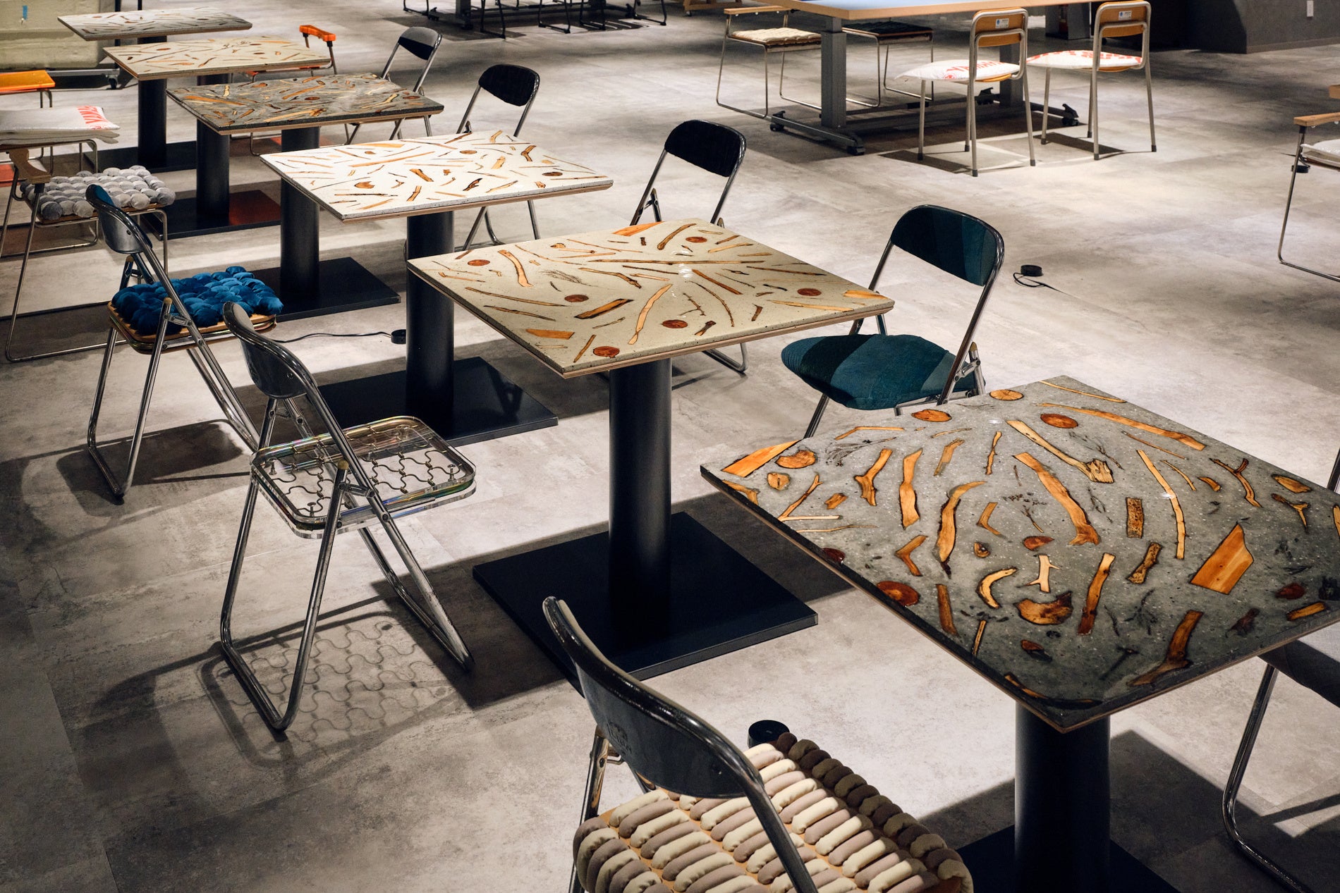 このテーマを具現化するため、船場は、ヤマハ発動機の製品の製造・輸送過程で発生した廃棄物や廃材などをアップサイクルして什器と家具を制作。共創スペースを訪れた来訪者に什器のストーリーを説明し、リジェネラティブについて考えるきっかけとしてもらうことを目指しました。