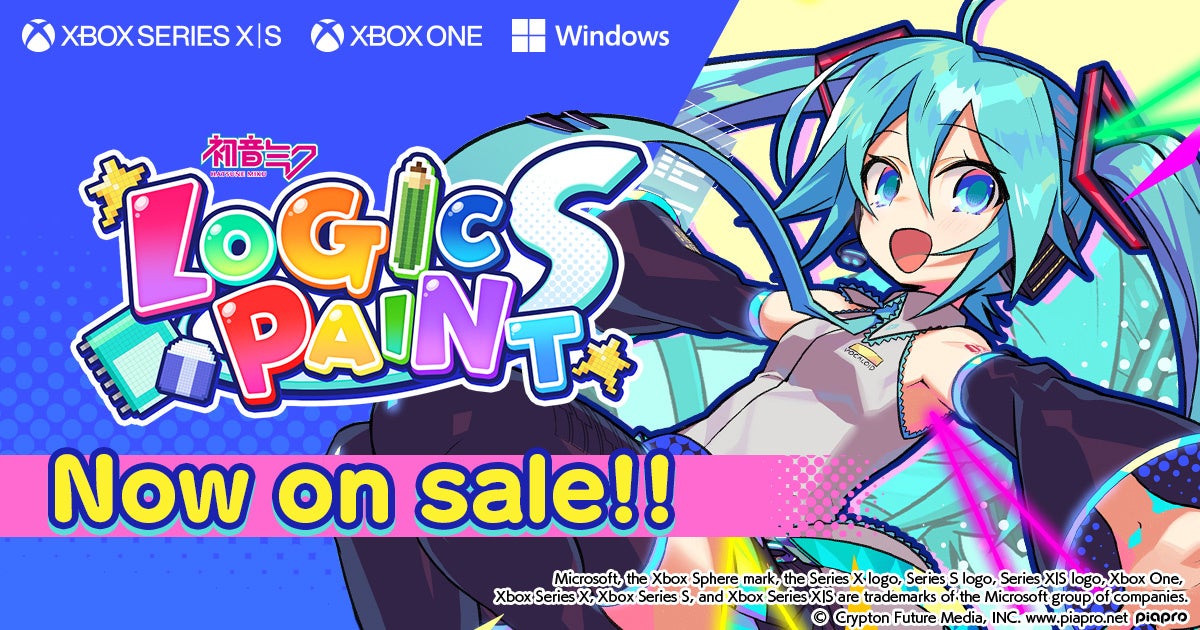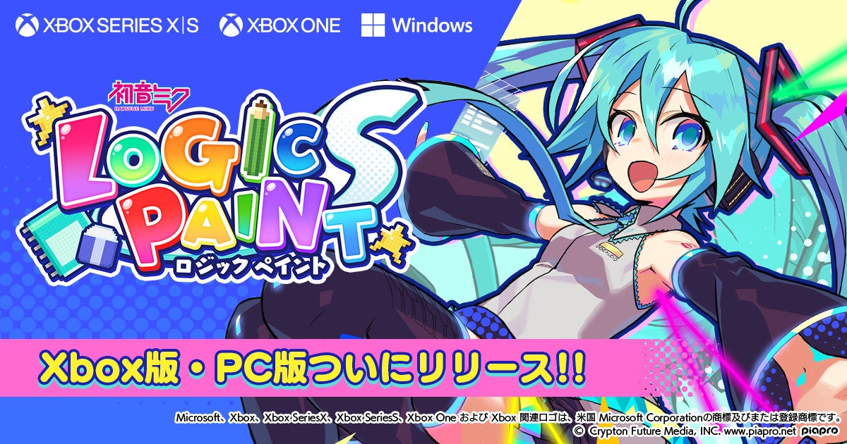 クリプトン・フューチャー・メディア株式会社(本社:北海道札幌市、代表取締役:伊藤博之、以下クリプトン)は、自社が初めて企画から開発までの全てを手掛けたパズルゲーム「初音ミク ロジックペイントS」のXbox版およびPC版を、2022年1月20日(木)にリリースいたしました。Xbox版・PC版ともに、ダウンロード専用ソフトとして、Microsoft®ストアにてご購入いただけます。1月31日(月)までは、期間限定でリリース記念セールを実施。20%OFFの1,200円(税込)で販売いたしますので、ぜひこの機を逃さずお買い求めください。