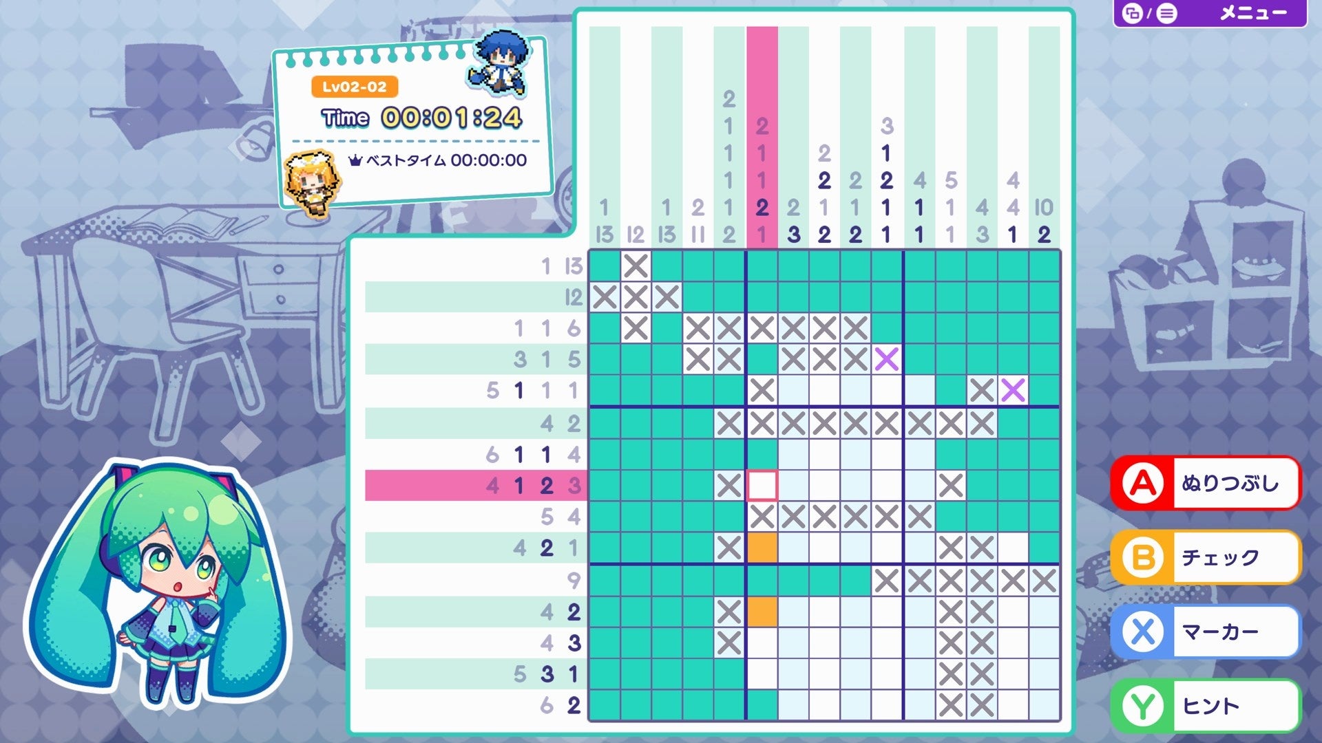 「初音ミク ロジックペイントS」は、方眼状のパズルの上部と左部にある数字をヒントにマスを塗りつぶして、パズルを完成させるゲームです。2021年3月にクリプトン初のNintendo Switch用パズルゲームとして誕生した本作を、より多くの方にお楽しみいただけるよう、XboxとPCに移植いたしました。