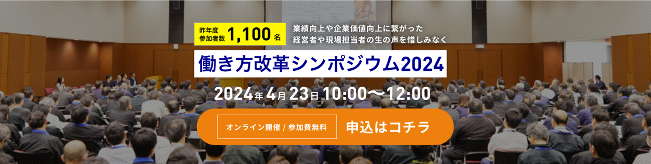 【プレスリリース】昨年度1100名参加の働き方改革シンポジウム2024を4月23日に無料開催・受付開始