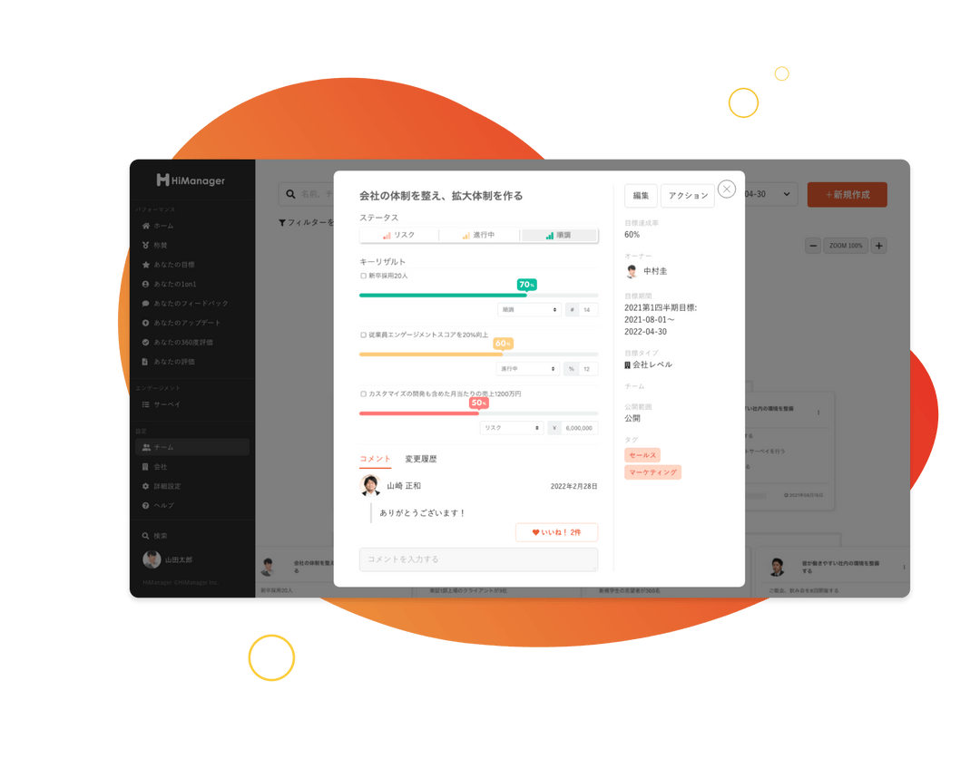 事業内容 :パフォーマンスマネジメントサービス「HiManager」及び人事コンサルティング