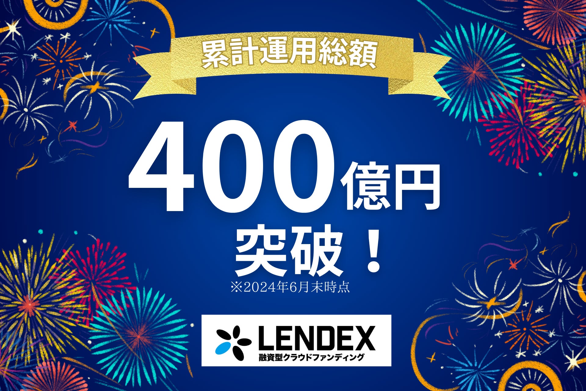 【融資型クラウドファンディングLENDEX】累計運用総額400億円突破のお知らせ