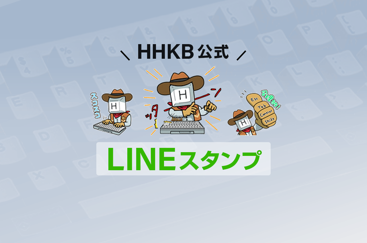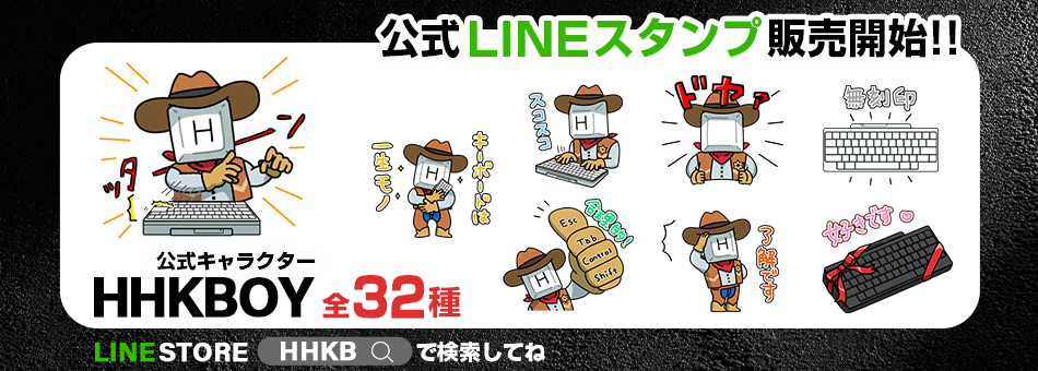 HHKBはPFUと和田英一先生との共同開発で生まれました。LINEスタンプのキャラクター「HHKBOY」は、和田英一先生の談話に登場したカウボーイとHHKBを掛け合わせたキャラクターです。