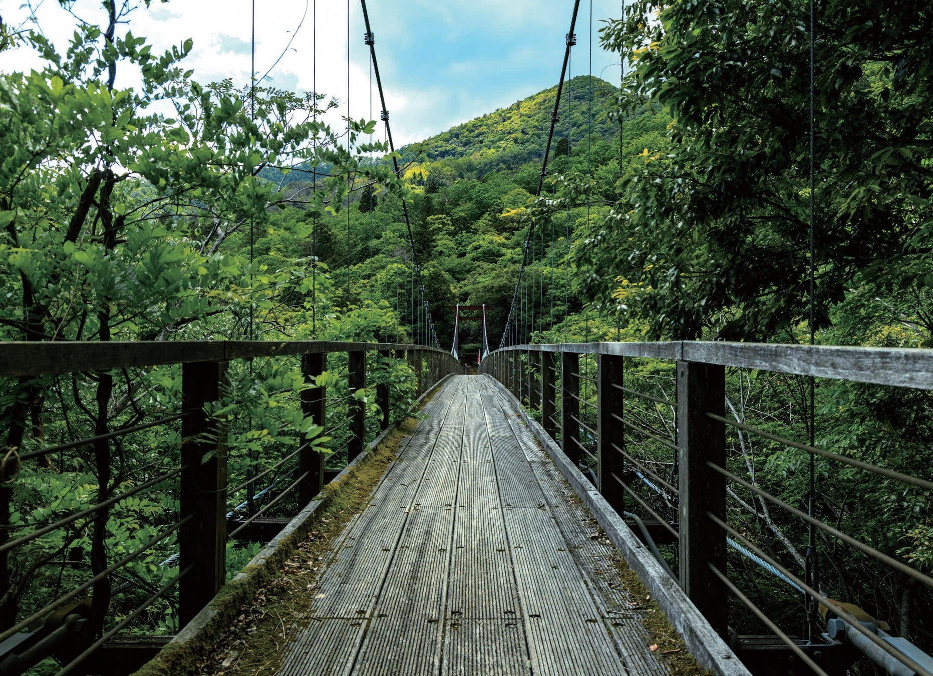 平安時代に、都から鬼に連れ去られた姫君が、血の付いた着物を洗ったと伝えられている「二瀬川渓流」に架かる「新童子橋」は、木造の吊り橋でスリル満点です。