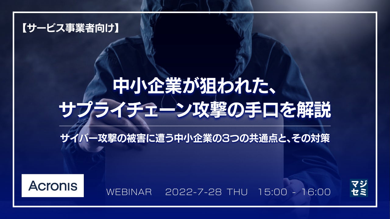 ・2022年6月22日に開催したセミナー「【サービス事業者向け】サイバー攻撃の被害に遭う中小企業がはまる3つの落とし穴と、その回避策」と同じ講演内容を含んでおります。多数のご要望により、追加開催させていただきます。