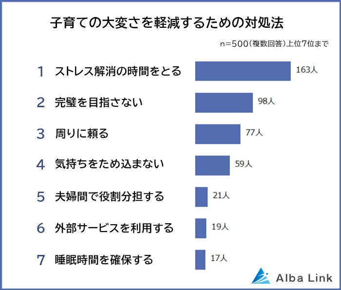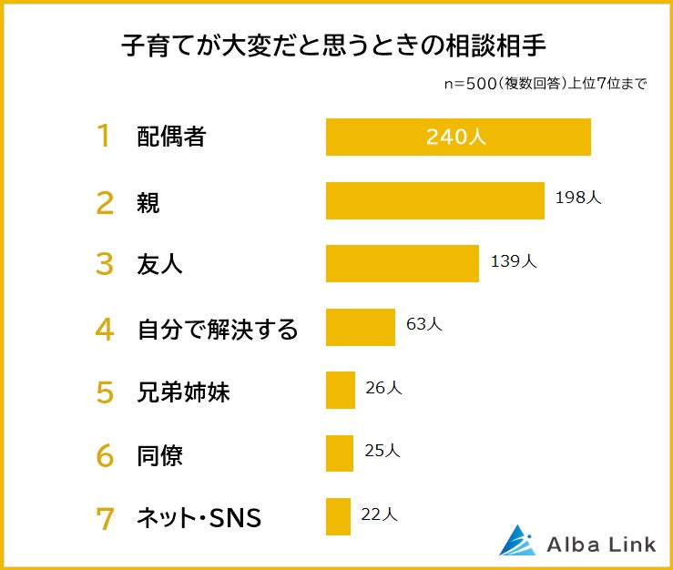 今回、株式会社AlbaLink( https://albalink.co.jp/ )が運営する訳あり物件買取ナビ( https://albalink.co.jp/realestate/ )は、子育て中の男女500人を対象に「子育てで大変なこと」についてアンケート調査を実施しました。