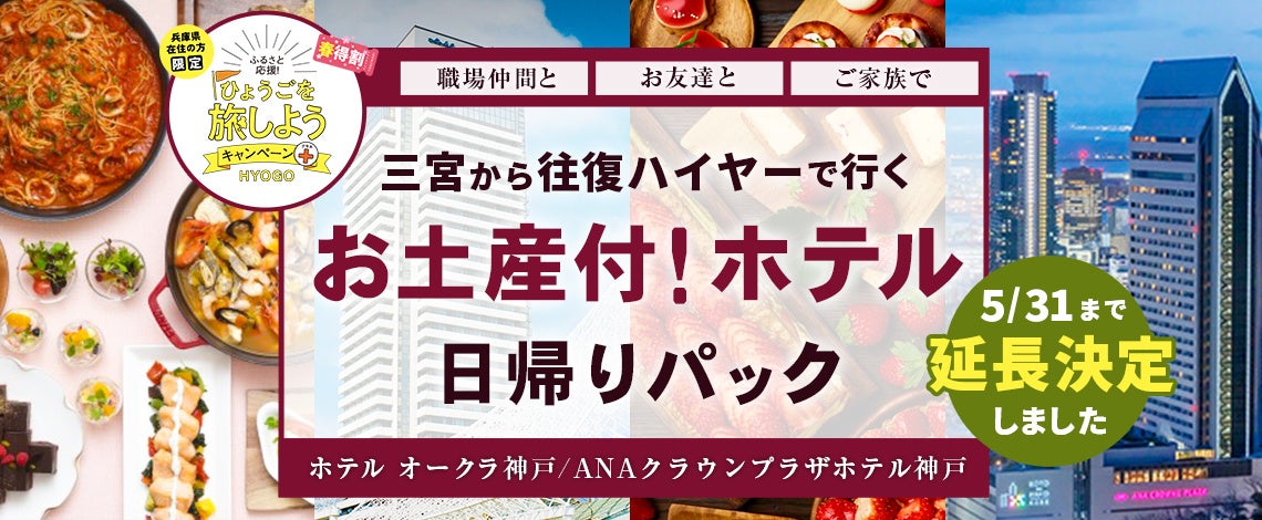 株式会社フォーティーズ(本社:大阪市鶴見区、代表取締役 岡武史)は「ふるさと応援!ひょうごを旅しようキャンペーン」の対象商品としてホテルオークラ神戸&ANAクラウンプラザ神戸のレストランと往復ハイヤーがセットになったパックツアーの期間延長分の販売を開始しました。