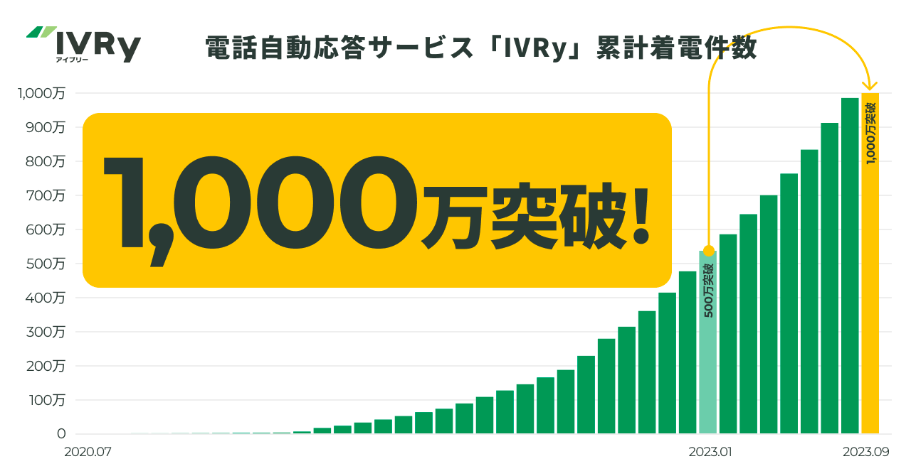 電話DX SaaSの「IVRy」、累計着電件数1,000万件を突破 〜総削減時間は83万時間超に〜