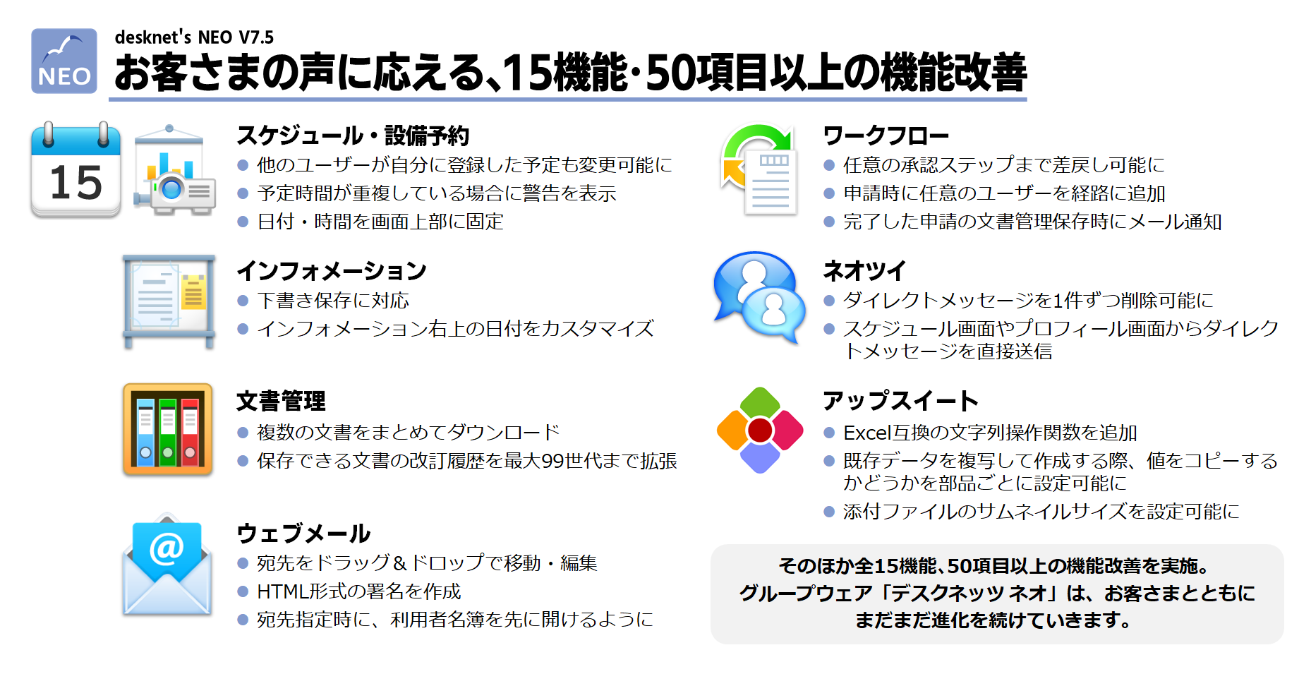 ネオジャパン、グループウェア『desknet's NEO』V7.5を提供開始 利用ユーザーの声を受け15機能・50項目以上の機能改善