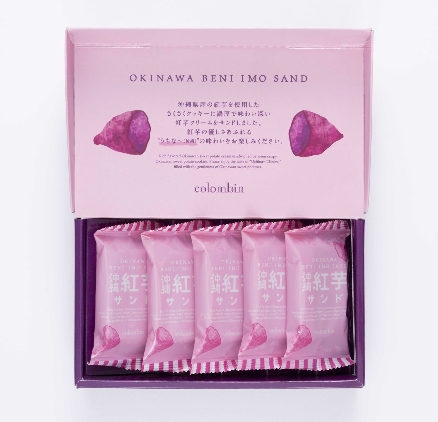 沖縄県産の紅芋を使用したサクサククッキーに、濃厚で味わい深い紅芋クリームをサンドしました。紅芋本来の濃厚な味わいや風味を最大限に活かした紅芋サンドです。大切な家族、友人と一緒に過ごした沖縄での思い出と共に、優しさあふれる「沖縄紅芋サンド」“うちな~(沖縄)”の味わいをお楽しみいただきたいと思い商品開発いたしました。本商品が、沖縄の地域活性化の一助にもなることを願っております。
