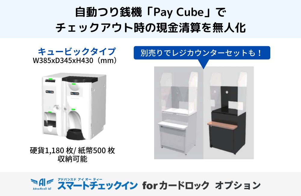 【現金清算の無人化が可能に】「AdvaNceD IoTスマートチェックイン for カードロック」に「Pay Cube」の取り付けオプションが新登場!