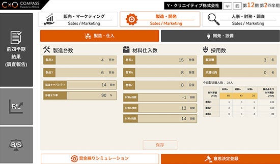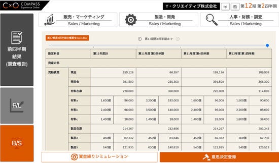 プレイヤーはそれぞれオンライン上で架空の企業の経営者となり、競合や市場の動きを予測し、戦略策定を実施。市場シェアを獲得し、売上・利益を伸長させることを目的として、四半期ごとに経営判断を繰り返します。的確な経営判断をするためには競合の財務分析も欠かせません。こうしたゲームの一連の流れから、経営数字の重要性や、計画立案・意思決定の難しさを体験できます。