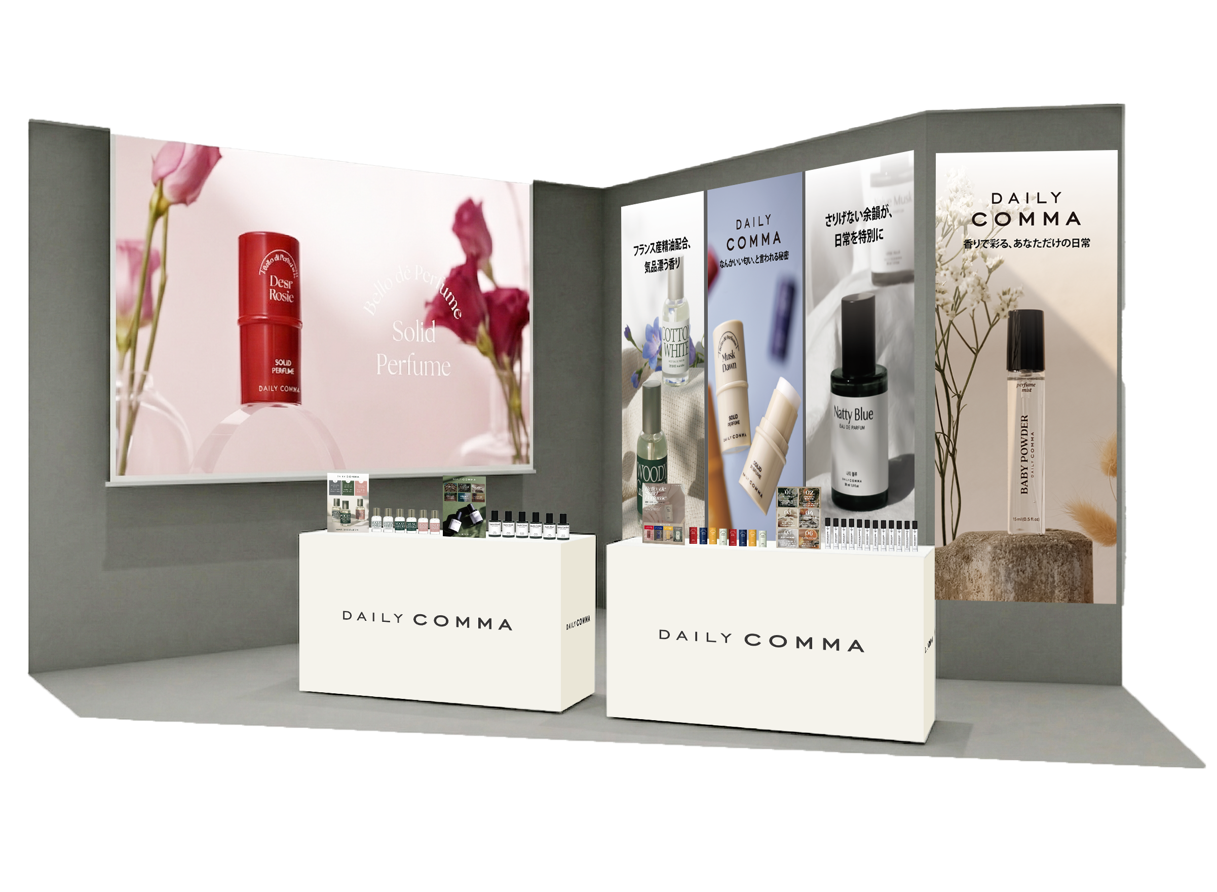 今回のPOPUPでは、ミニサイズで気軽に楽しめる「アロマパフュームミスト」やバーム状の練り香水「ソリッドパフューム」をはじめ、デイリーコンマの人気フレグランスアイテムを幅広く展開いたします。