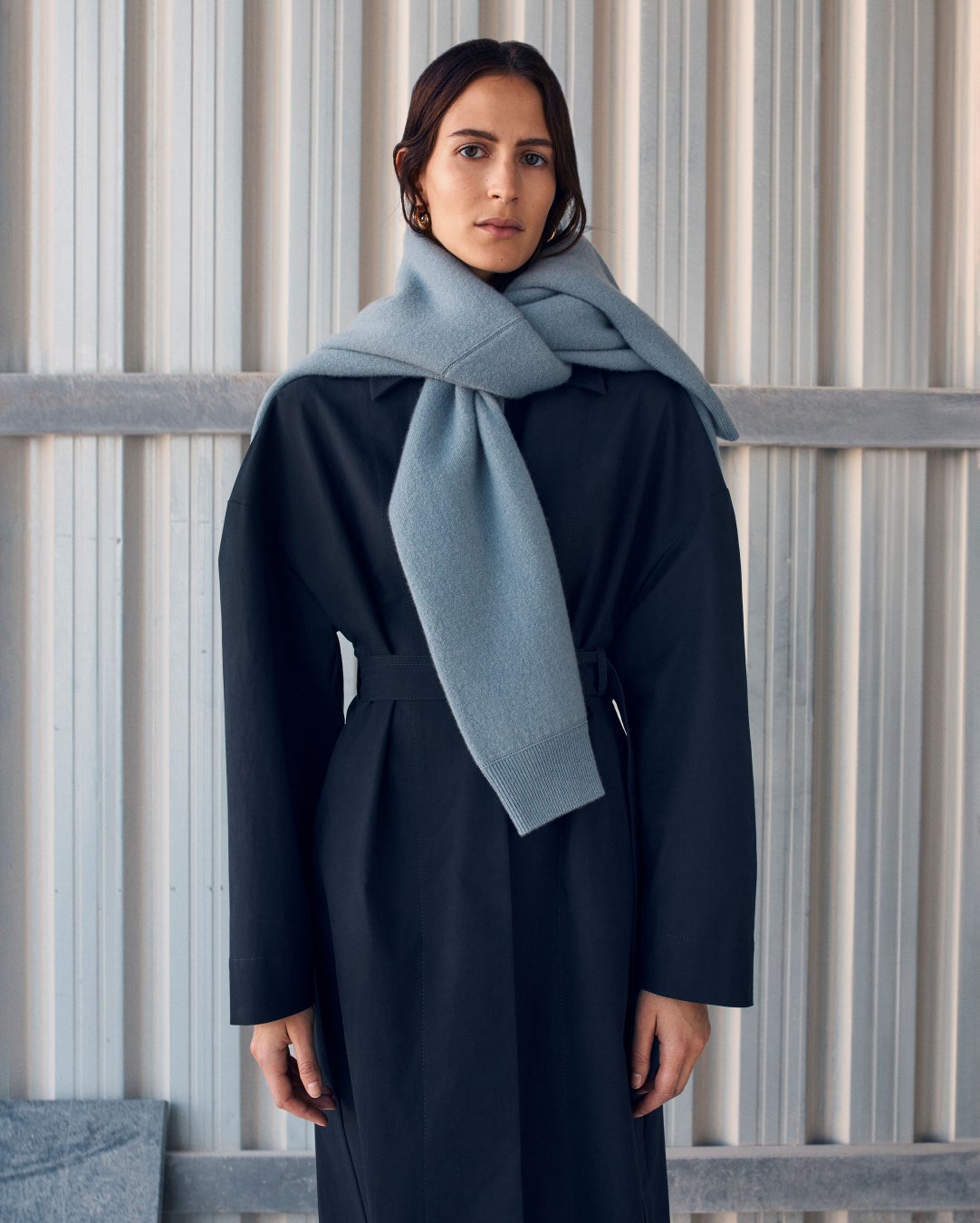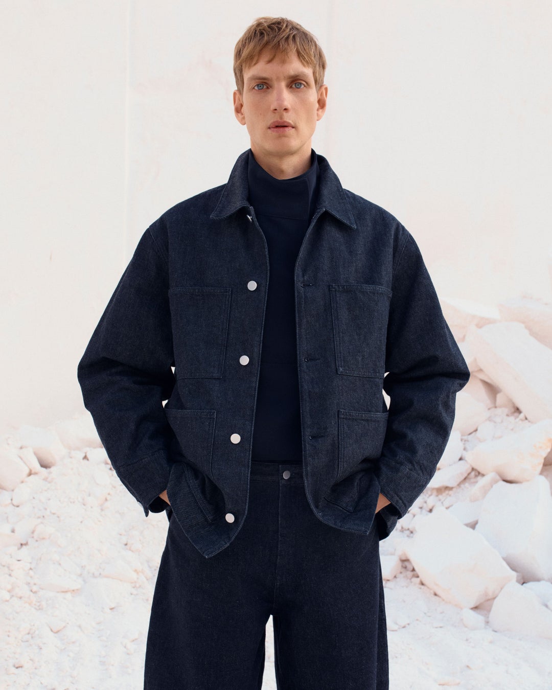 レディースウェアのシルエットは、ニック・ウェイクマンならではの機知と厳格さで作られています。スタジオ・ニコルソンのモジュール式ワードローブと同じデザインを彷彿とさせる、解体されたクラシックなセレクションで、どのアイテムにも進歩的なセンスを兼ね備えています。これらのクリーンで生き生きとしたフォルムの中核をなすのは、高度なファブリケーションを駆使した、洗練され角ばったモダニズムのミックスです。オーガニックコットンを使用したシグネチャー・トレンチや、リサイクル・ダウンを使用した中綿入りのポップ・オーバー・ ジャケット(表地はシャワープルーフのリサイクル・ナイロン)を展開しています。