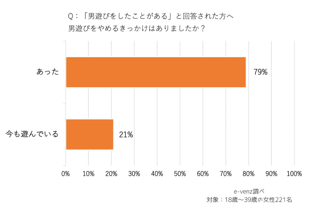 男遊びをしたことがある18歳から39歳の女性221名に、男遊びをやめるきっかけがあったかを調査しました。