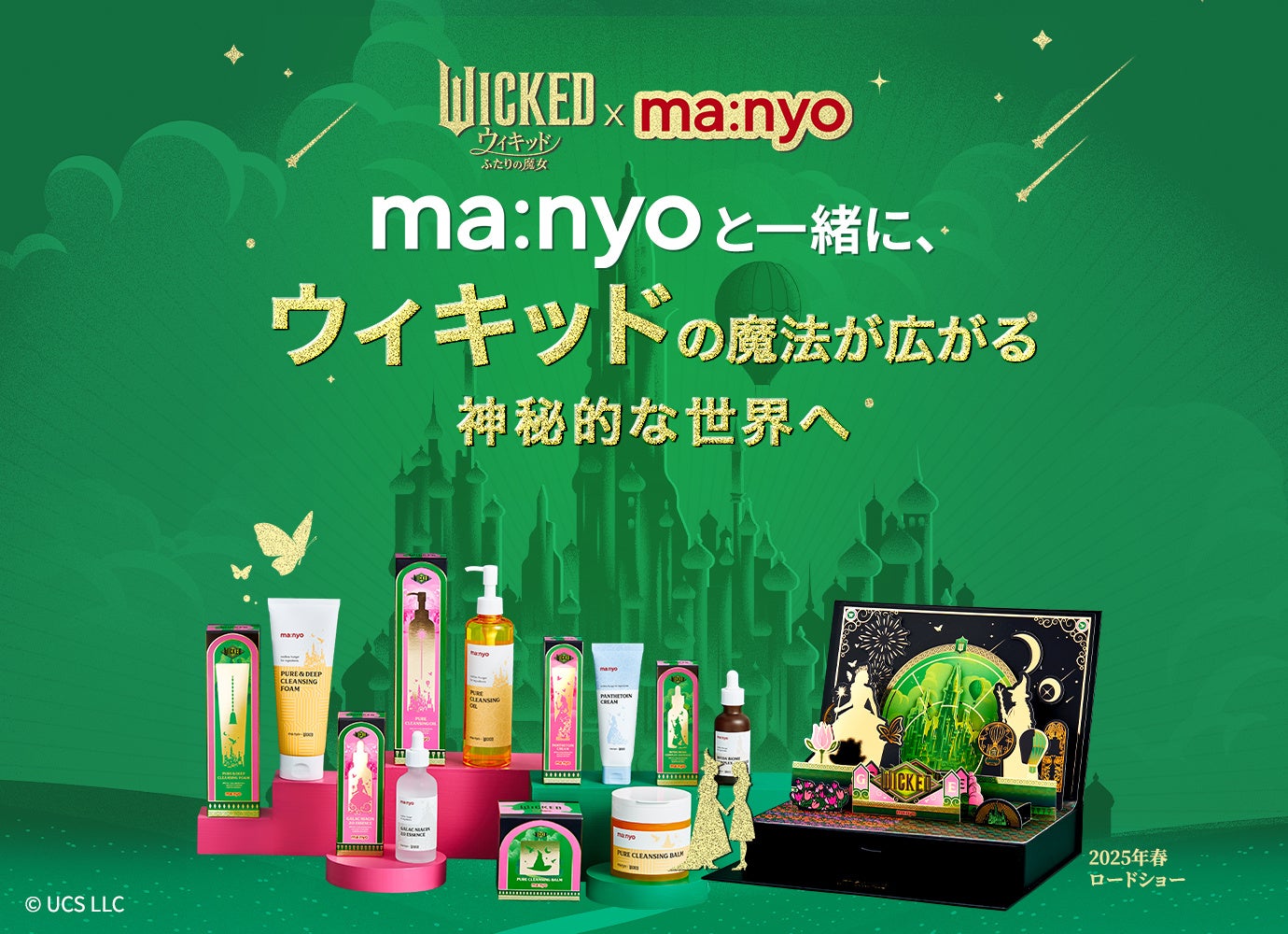 今回のウィキッドエディションは韓国化粧品ブランドの中でコラボレーションを行った唯一のブランドであり、「Welcome to the magical world」をテーマに、ウィキッドの魅力をたくさん盛り込んだ、リミテッドエディションパッケージとなります。望みの肌を叶える魔法のようなコラボエディションから、「ウィキッド」の神秘が詰まったアドベントカレンダー、魔法の瞬間を共にするグッズまで。manyoと一緒に、「ウィキッド」の魔法が広がる神秘的で驚きに満ちた世界へ旅立ちましょう。