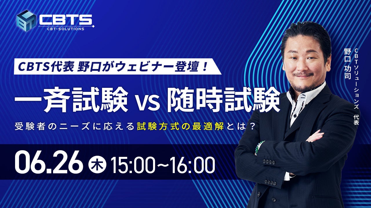 【無料ウェビナー開催!】『CBTS代表 野口登壇ウェビナー開催決定!“一斉VS随時”試験の最適解』