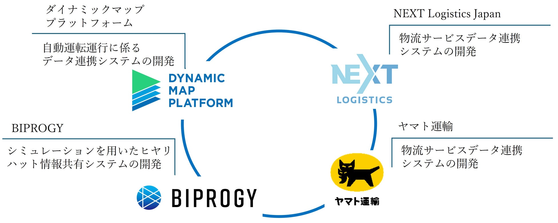 ダイナミックマッププラットフォーム株式会社(本社:東京都渋谷区、代表取締役社長CEO:吉村 修一、以下「ダイナミックマッププラットフォーム」)、BIPROGY株式会社(本社:東京都江東区、代表取締役社長:齊藤 昇、以下「BIPROGY」)、NEXT Logistics Japan 株式会社(本社:東京都新宿区、代表取締役社長CEO:梅村 幸生、以下「NEXT Logistics Japan」)、ヤマト運輸株式会社(本社:東京都中央区、代表取締役社長:長尾 裕、以下「ヤマト運輸」)の4社は、NEDO(国立研究開発法人新エネルギー・産業技術総合開発機構)公募「産業DXのためのデジタルインフラ整備事業/デジタルライフラインの先行実装に資する基盤に関する研究開発」における「自動運転支援道」事業の実施予定先として採択されました。4社はコンソーシアムを組んで自動運転を支援するデータ連携システムを開発し、業務の効率化やリソースの最適化を目指します。
