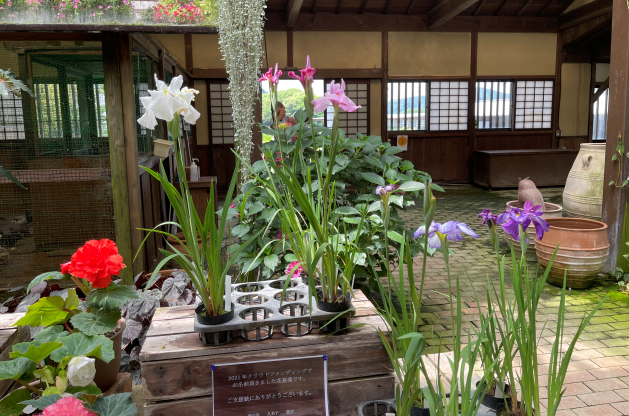 花売店脇に、昨年のクラウドファンディングでお名前を付けていただいた花菖蒲も展示しました。素敵なお名前をありがとうございました。