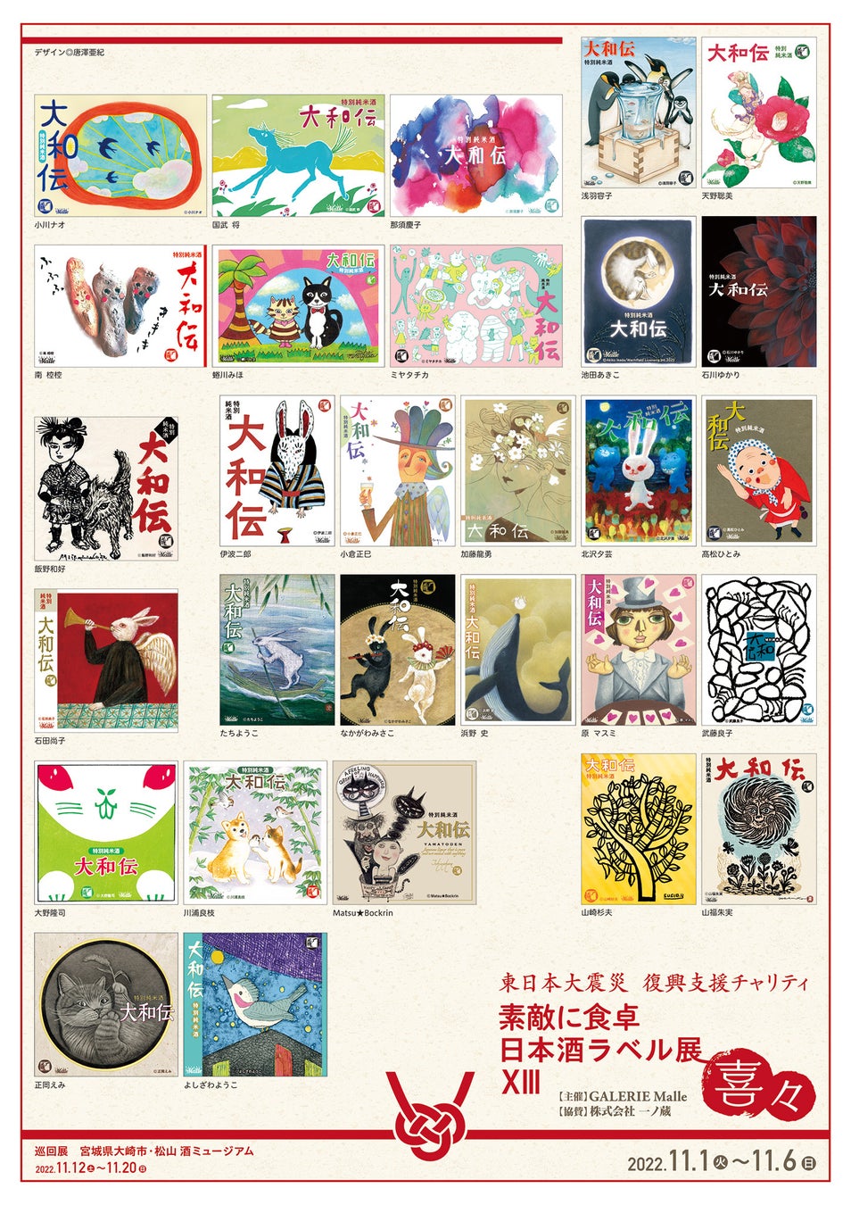 ラベル展は、GALERIE Malle (ギャラリー まぁる)の会場で本展開催。宮城県大崎市・松山 酒ミュージアムにて巡回展が行われる。