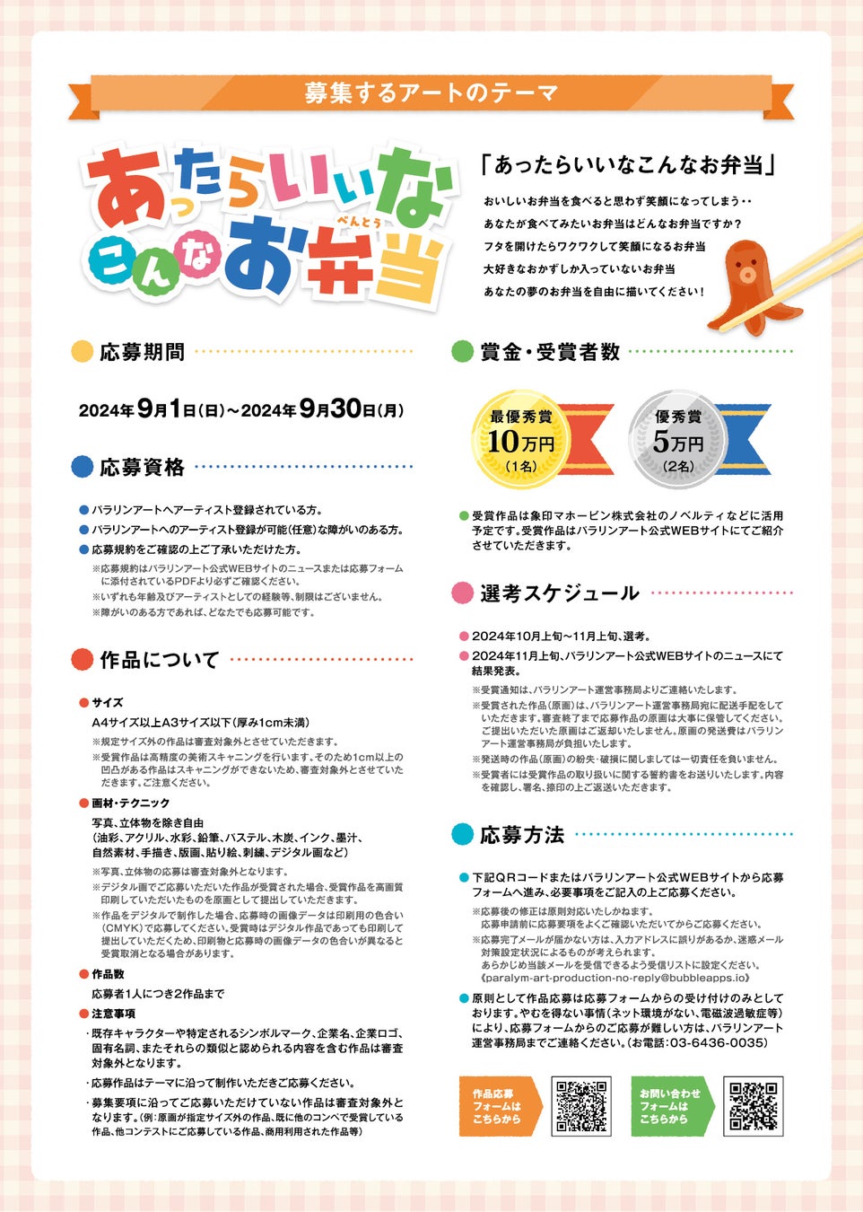 「あったらいいな こんなお弁当」を描く、障がい者による”パラリンアート”アートコンテスト開催のお知らせ
