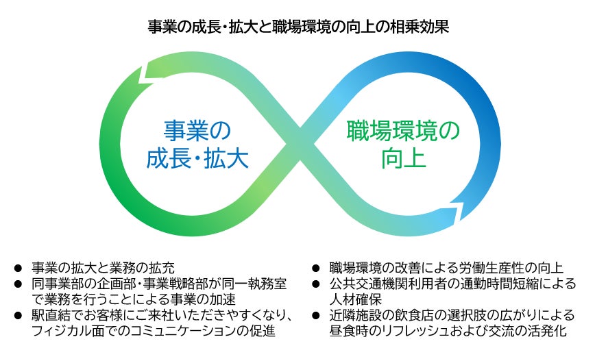 移転を機に、同事業部の事業戦略部と企画部が同一執務室で業務を行うことで、サポート体制の強化および環境経営コンサルティングサービスの拡充を行い、お客様の環境目標達成をこれまで以上に支援いたします。
