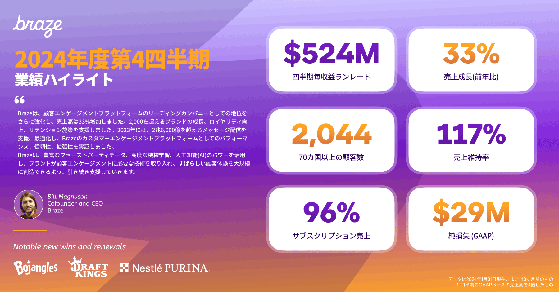 消費者とブランドとの関係性を強化するカスタマーエンゲージメントプラットフォームのリーダーであるBraze (Nasdaq:BRZE) は、2024年1月31日を期末とする第4四半期の業績を発表しました。