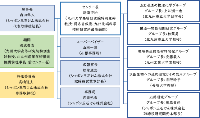 この石けんリサーチセンター(以下、センター)は、シャボン玉石けん株式会社と北九州市立大学、九州工業大学との共同研究協定により2011年に設立され、前任の当センター長・九州大学高等研究院特別主幹教授の國武豊喜先生ご尽力のもと、石けんを産学連携の枠組みを活用しながら、基礎と応用の両面の視座から科学的に研究する機関として発展してまいりました。