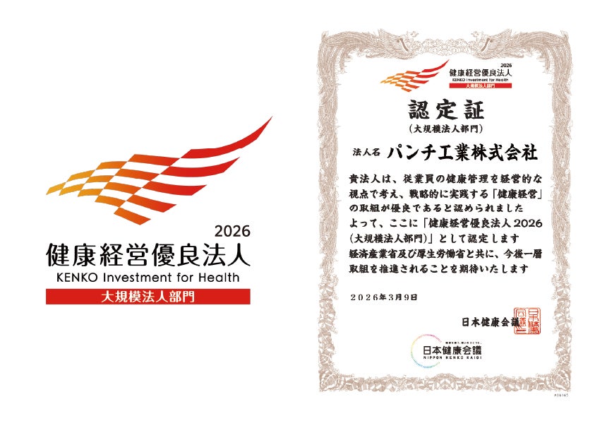 パンチ工業株式会社は、経済産業省より3月9日に発表された「健康経営優良法人2026(大規模法人部門)」に2年連続で認定されました。