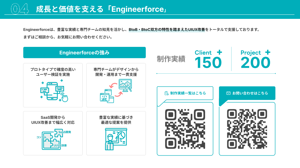 Engineerforceは、こうした“顧客中心のUX戦略”を支援する専門チームとして、ペルソナ設計からUI/UX改善、SaaS開発支援までをワンストップでサポートしています。
