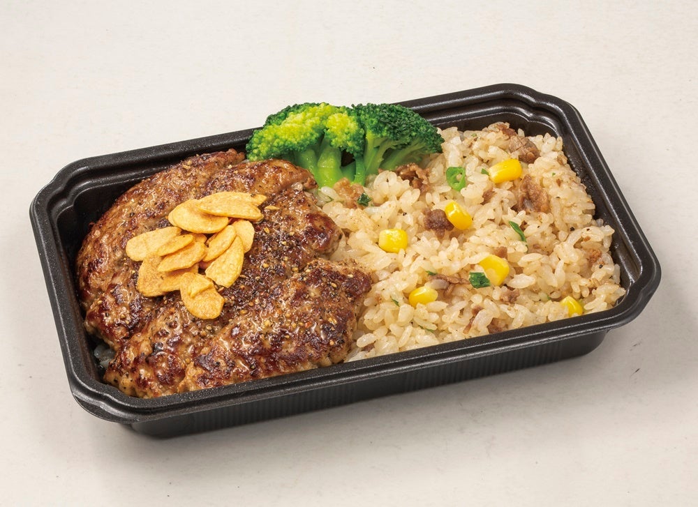 ブラックペッパー香るガーリックライスと、じゅわ~とやわらかい100%ビーフハンバーグの相性がたまらない「ガリ弁」はこのボリューム感で1,000円(*1)のお得な価格です。食べ応え抜群のボリューム感とお手頃な価格から再販希望の声が多かった「ガリ弁」を、お花見やスポーツ観戦などでテイクアウト・デリバリー需要の高まる春休み・行楽シーズン限定で復活させました。