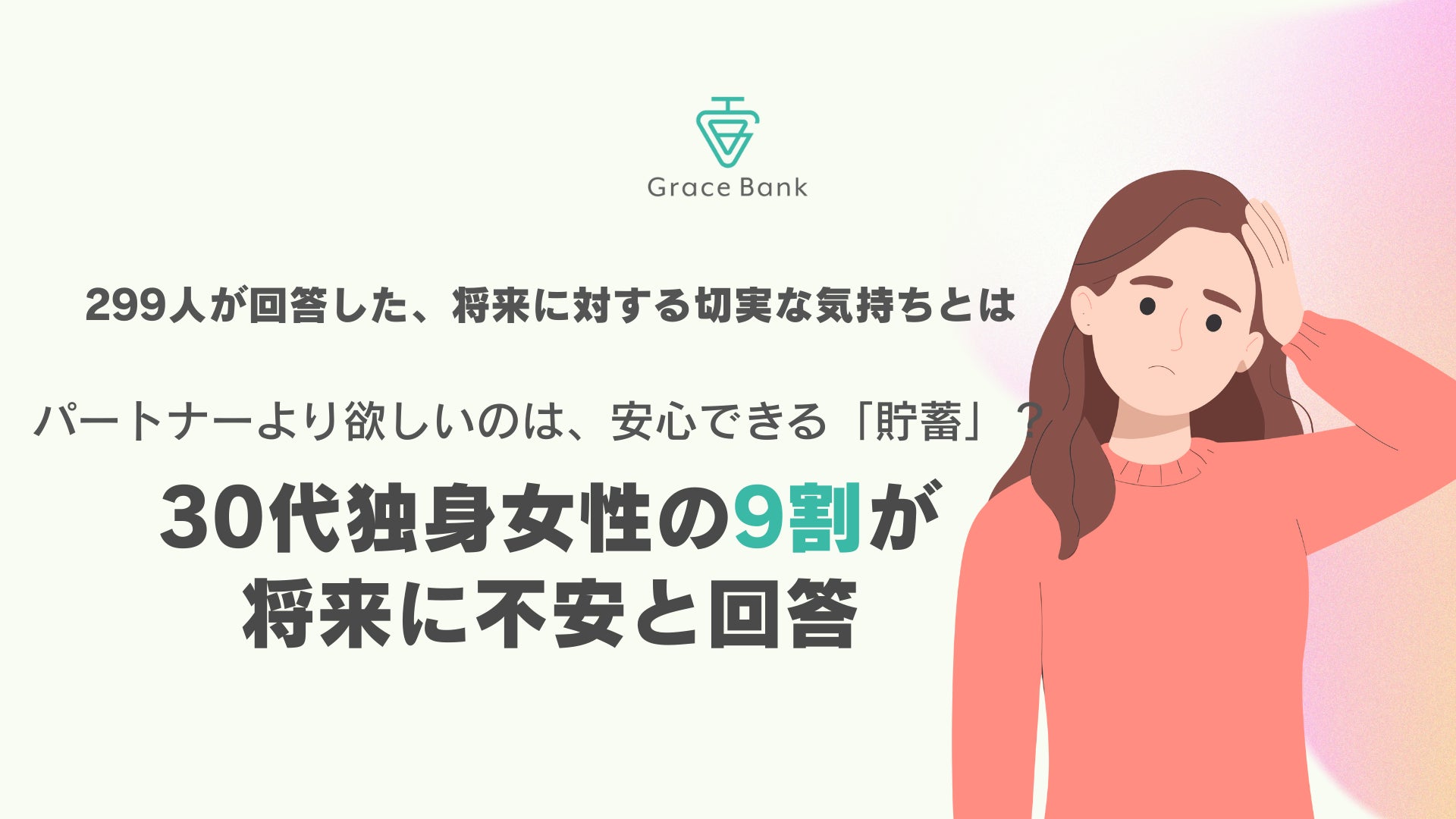 卵子凍結保管サービス「Grace Bank(グレイスバンク)」を運営する株式会社グレイスグループ(本社:東京都渋谷区、代表取締役CEO:勝見 祐幸、以下「グレイスグループ」)は、30代の未婚女性299名を対象に「将来に関する不安」について調査いたしました。