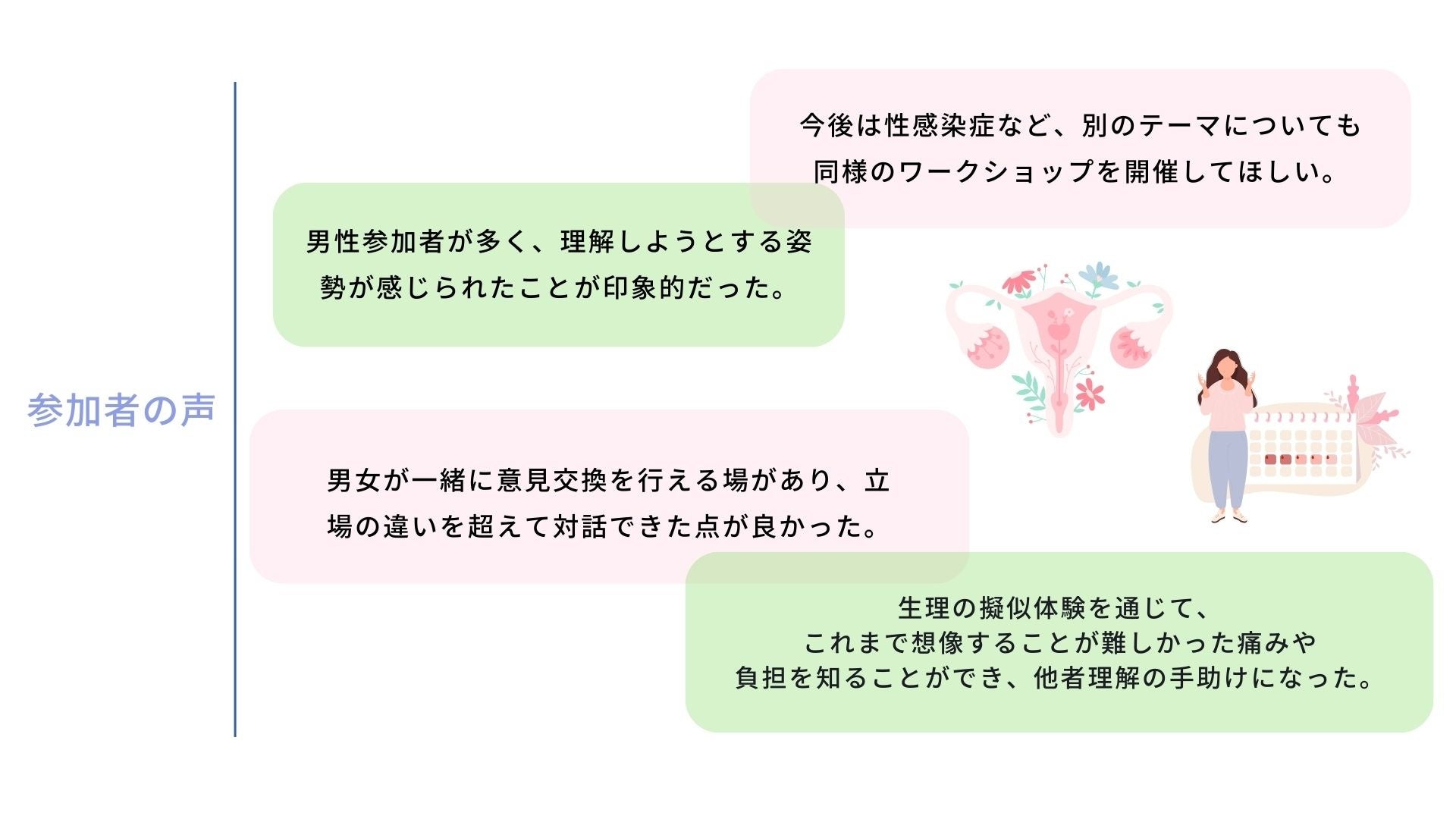 SRHRに関する基礎的な学びと、生理痛体験を組み合わせることで、性別や立場を問わず、他者の身体や生き方について考えるきっかけを提供しました。