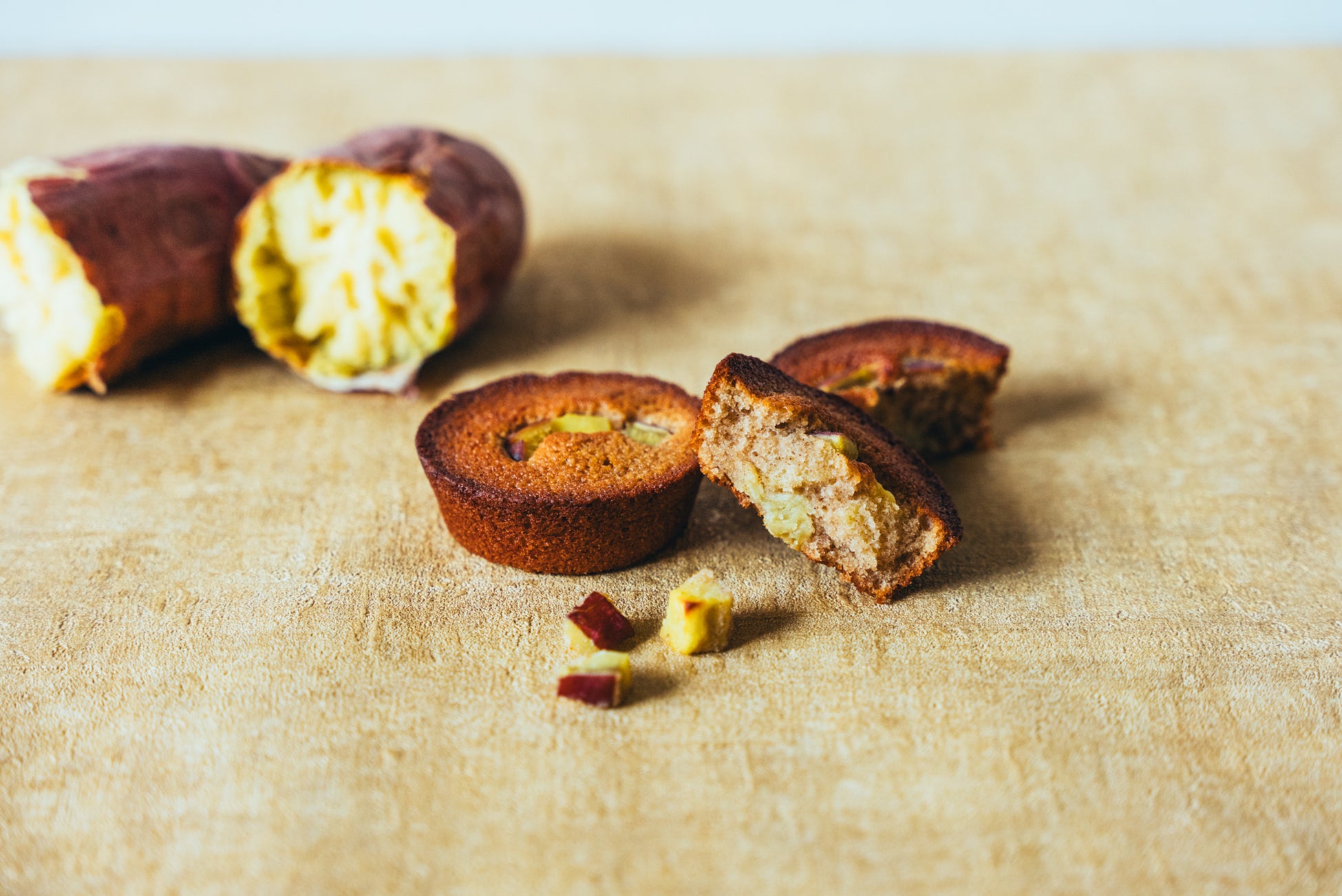 「JOE TALK COFFEE」の秋の新商品「シナモン香るおさつ焦がしバターフィナンシェ」は、コーヒーによく合う甘さが強くしっとりとした食感の紅はるかを使用しています。角切りにした紅はるかに加え、フィナンシェの中にペースト状の紅はるかを入れることで、食感の違った2つの味わいをお楽しみいただけます。