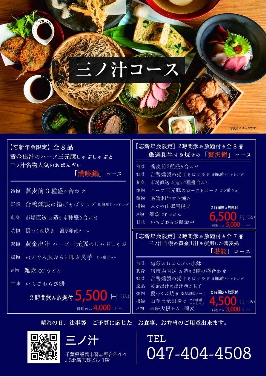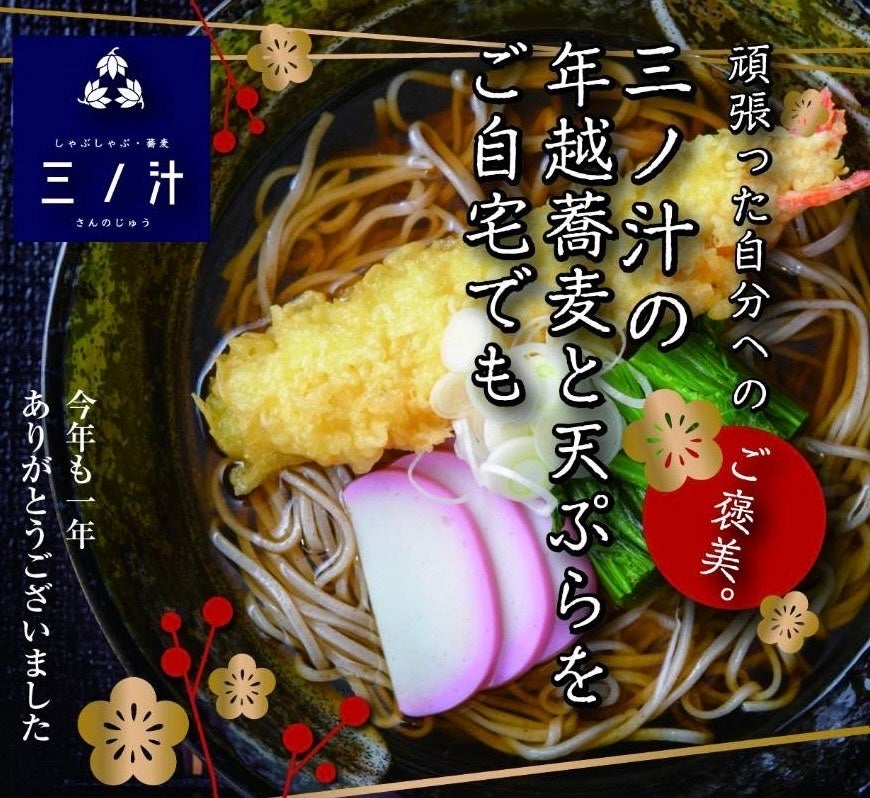 年末の締めくくりに、是非ご家族・ご友人と三の汁の蕎麦をお楽しみください。