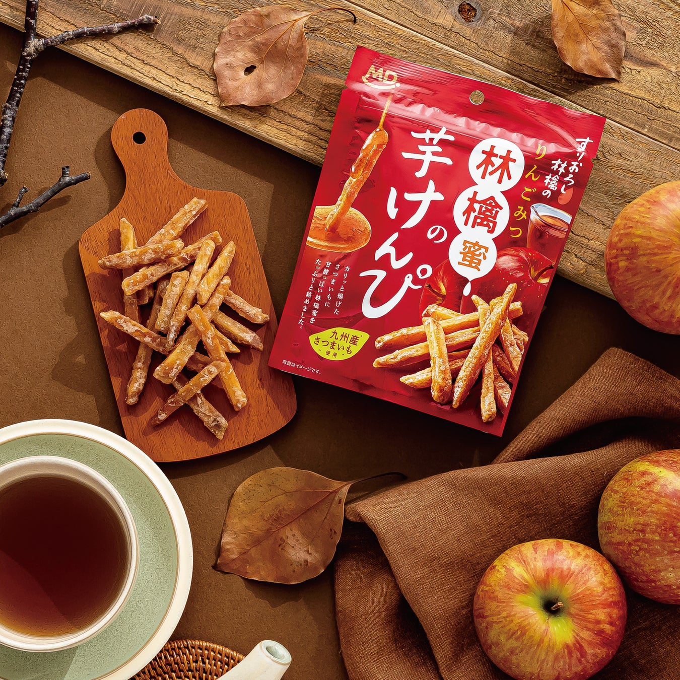 そして、このたび復活を熱望するお声にお応えして、2024年11月より、さらに美味しくなって再登場するに至りました。多くの方に愛された『葡萄蜜の芋けんぴ』に加え、たっぷりの蜜を含んだりんごを表現した『林檎蜜の芋けんぴ』も合わせて登場します。秋の味覚を詰め込んだ本商品を、ぜひお試しください。